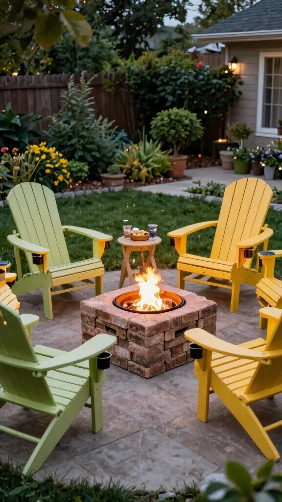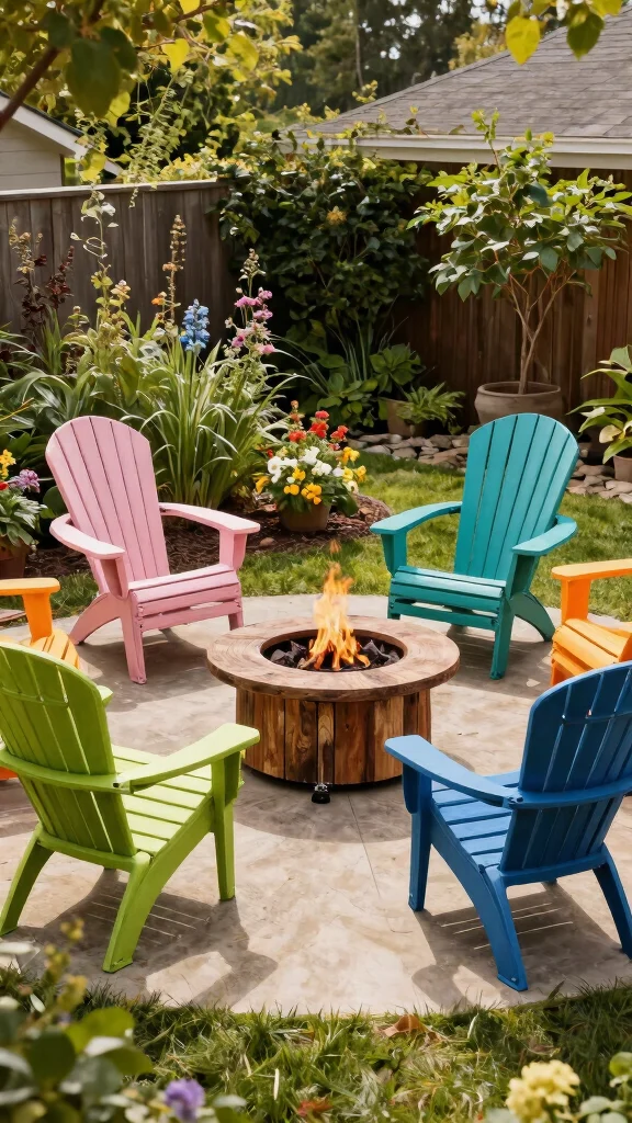Infuse your backyard with vibrant energy through a beach-inspired Adirondack chair setup. Opt for bright, tropical hues and pair them with an organic fire pit to evoke a relaxed, summery atmosphere. This lively combination is perfect for toasting marshmallows or simply enjoying time with friends.