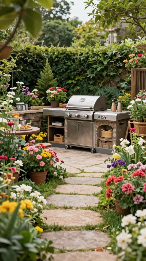 Imagine transforming your garden into a BBQ retreat where culinary delight meets nature. With a built-in grill surrounded by blooming flowers and lush greenery, this area creates a peaceful cooking atmosphere. Using native plants not only enhances beauty but also supports local wildlife. A winding garden path can lead guests to the grill area, adding an enchanting touch to your outdoor experience.