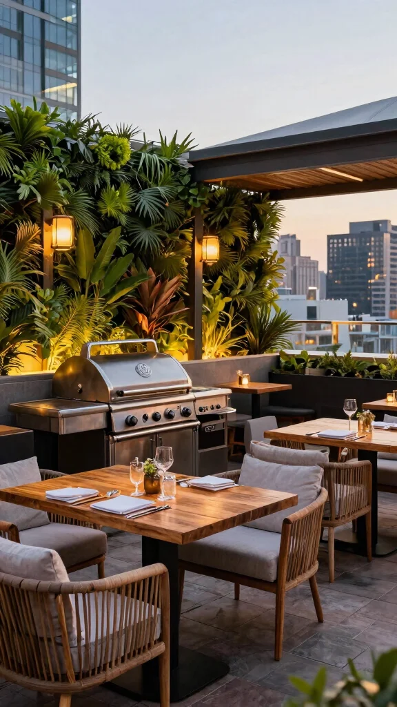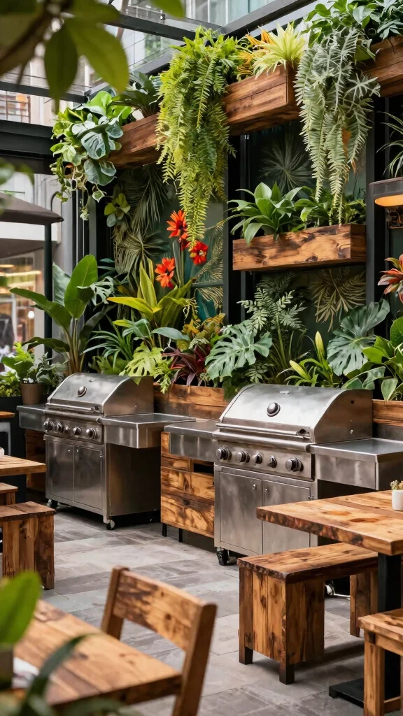 Looking for a barbecue setup that brings the vibrancy of nature into your city space? This urban jungle BBQ zone marries modern design with lush greenery, creating a feast for the senses. With sleek grills and surrounding plants, you’ll not only elevate your cooking game but also enhance your outdoor experience. Plus, the fresh herbs at your fingertips ensure your dishes are bursting with flavor.