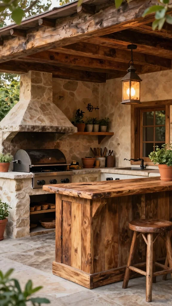3. Rustic Charm Outdoor Kitchen