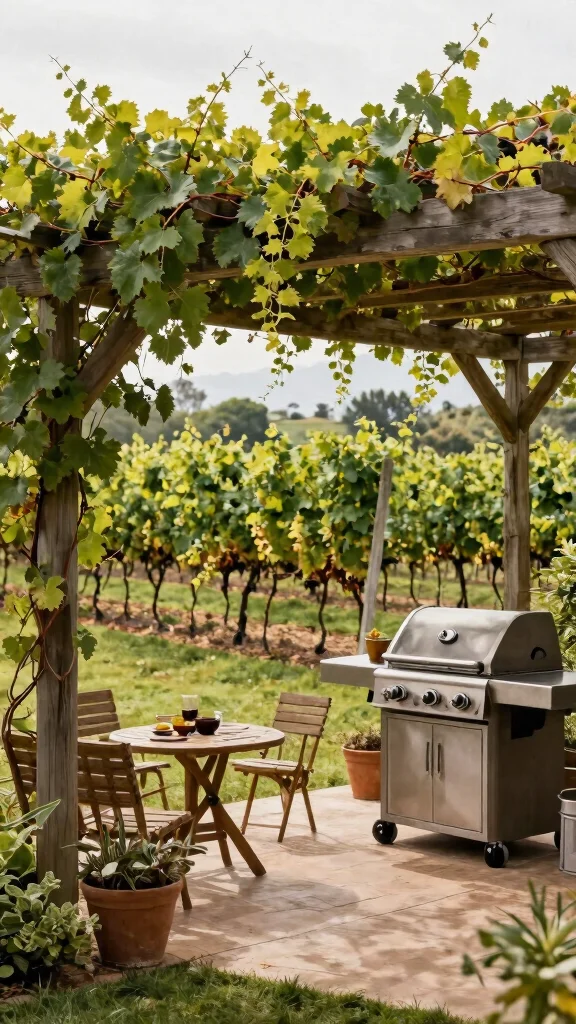 Backyard vineyards under a vine-covered pergola can cut sun exposure by up to 60%, turning your backyard BBQ into a cooler, tastier experience. Pair this with composted grape leaves and you get a truly sustainable barbecue design outdoor grill area.