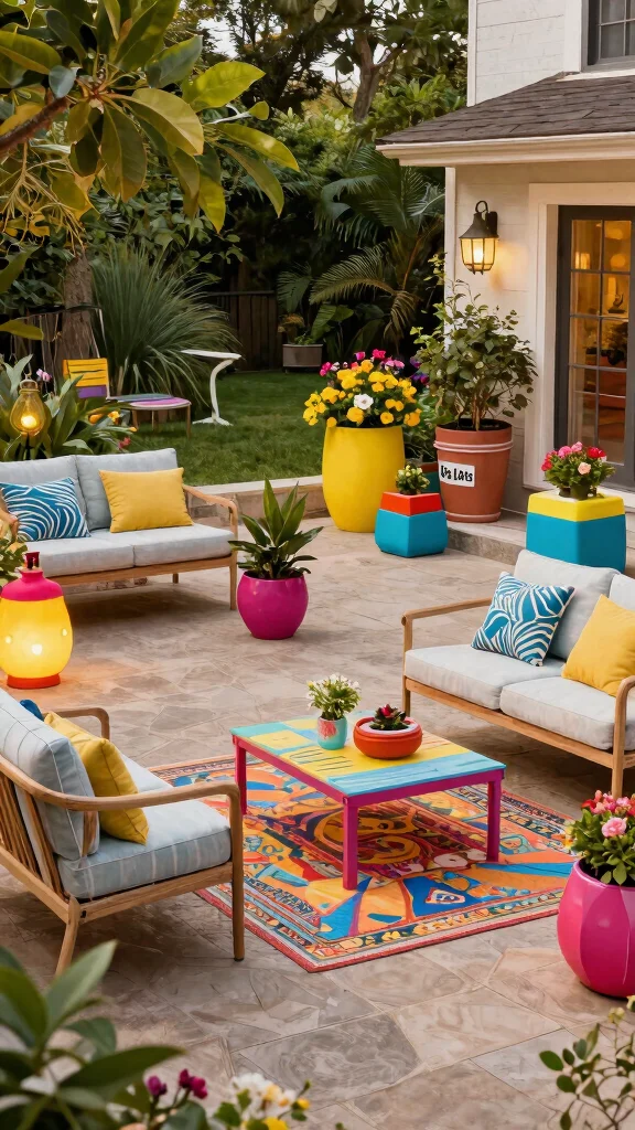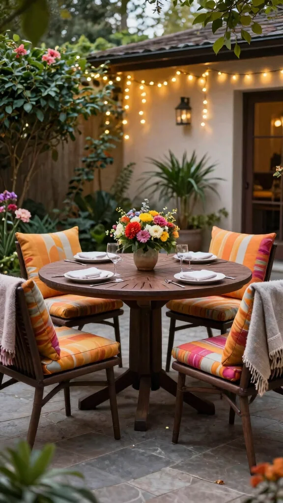 Layer your dining set with colorful table linens and vibrant dinnerware for a lively vibe. Consider adding a beautiful centerpiece, like a vase filled with fresh flowers, to elevate the dining experience. With these touches, your outdoor space will become the ultimate hosting destination.