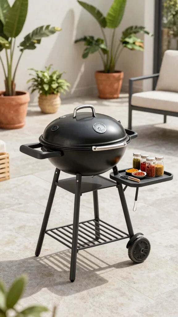 If you’re short on space but still want to enjoy grilling, a compact charcoal grill with a side table is the perfect solution. This design offers a convenient prep area while fitting snugly onto your patio or balcony. You can keep your spices, sauces, and tools right at your fingertips, making grilling a breeze.