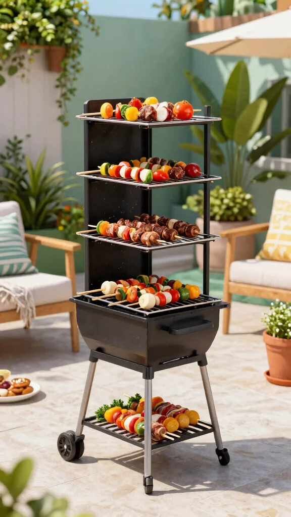If you enjoy experimenting with cooking styles, a vertical charcoal grill is a fantastic choice. This design allows for vertical cooking, enhancing moisture retention and flavor infusion. It’s perfect for grilling whole chickens, fish, or kabobs.