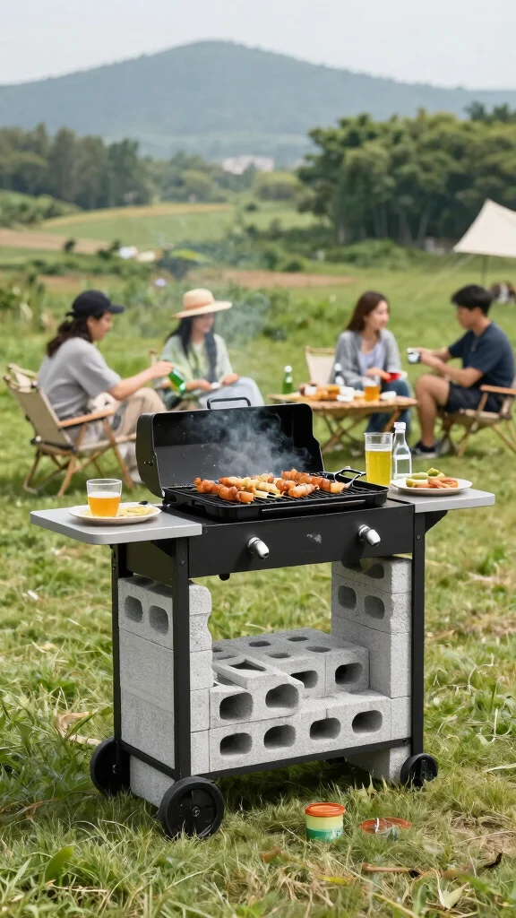 Do you love grilling while traveling? A portable cinder block grill station is a fantastic option for those who want to take their cooking on the go. This design allows you to easily dismantle and transport your grill setup, making it perfect for tailgating, camping, or backyard parties.