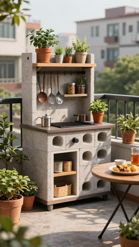 4. Compact Cinder Block BBQ Station for Small Spaces