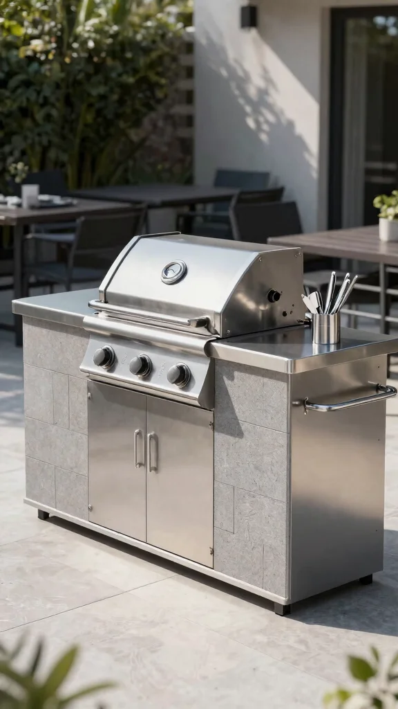This design not only looks fantastic but also offers durability and easy maintenance. Consider adding integrated features like a sink for convenience, making your grilling experience even more enjoyable.