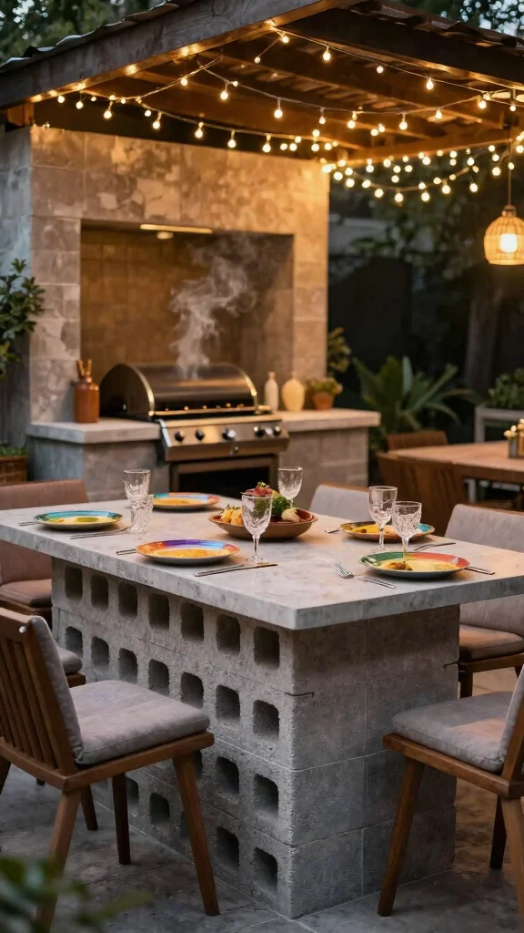 Looking for a grill station that doubles as a dining area? A cinder block grill with an attached countertop creates a perfect flow for entertaining guests. This design allows you to serve food easily while keeping everyone engaged in conversation during cooking.