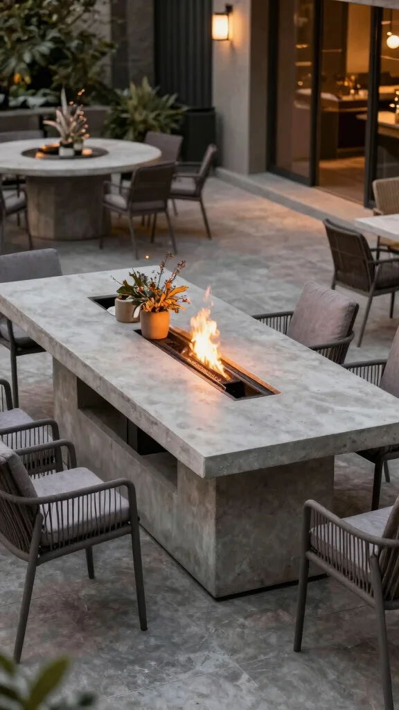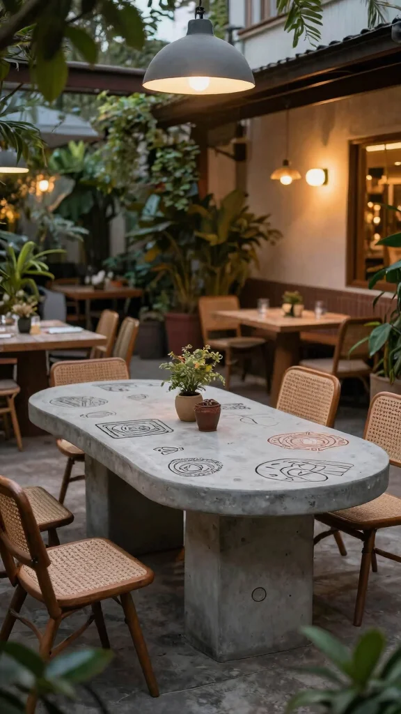 Multi-functional concrete outdoor dining tables bring versatility to your gatherings. Many designs feature built-in fire pits, ice coolers, or storage options, allowing you to maximize functionality while enjoying your outdoor experience.