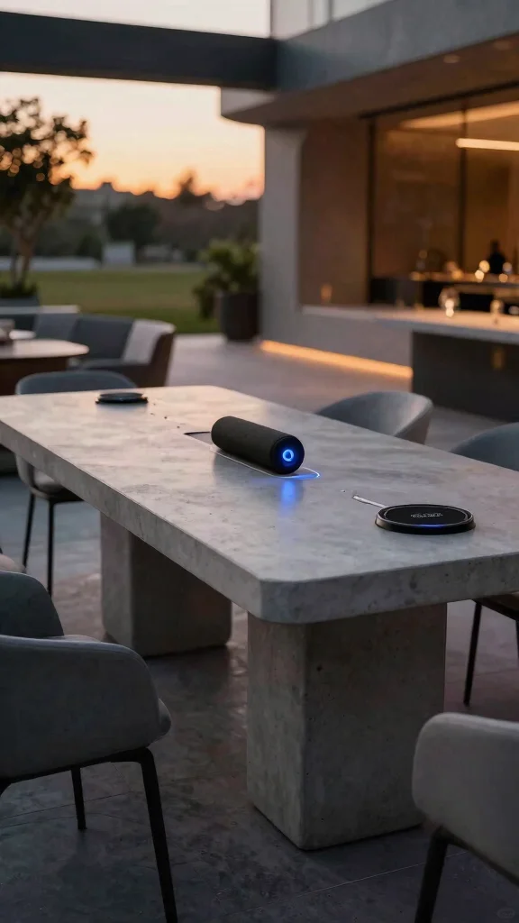 Step into the future of outdoor dining with smart concrete tables. Equipped with features like wireless charging, Bluetooth speakers, and smart lighting, these tables enhance your outdoor experience significantly.