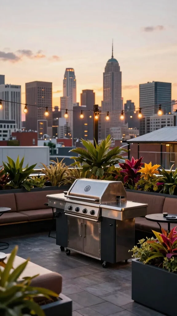 For city dwellers, an urban rooftop grill oasis can be your go-to spot for grilling with breathtaking views. This area can feature a stylish grill and seating that takes full advantage of the skyline. Adding planters with greenery softens the urban setting, creating a serene escape from the city bustle.