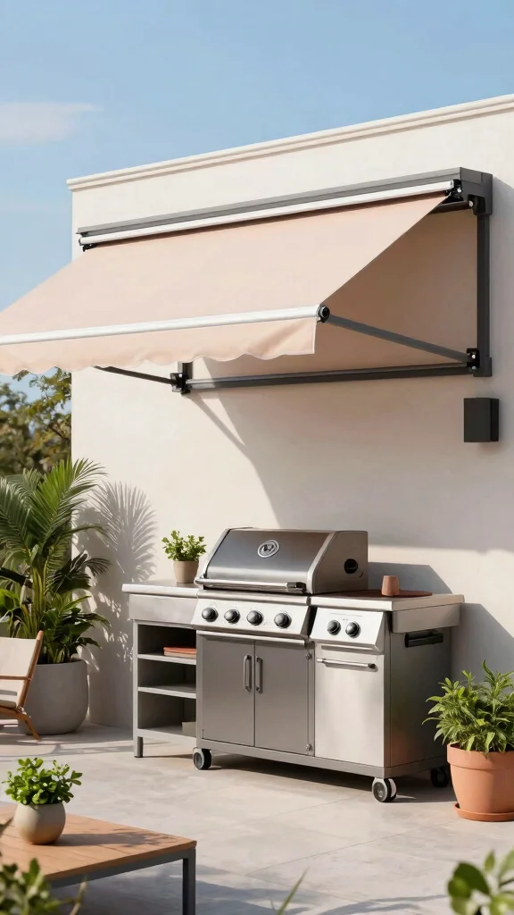 Are you tired of weather ruining your outdoor cooking plans? A chic retractable awning allows you to grill while staying protected from the elements. Simply extend the awning during rain showers or roll it back for sunny days, giving you flexibility and style in your backyard. The sleek design will catch the eye and keep your cooking area cool on hot summer days.