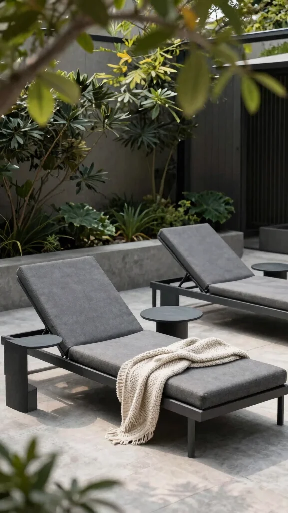 Fun fact: In minimalist outdoor spaces, dark grey patio furniture can make a small patio feel up to 30% larger by reducing visual clutter. Pair a low-profile lounge chair with a simple side table to keep the look clean and inviting.