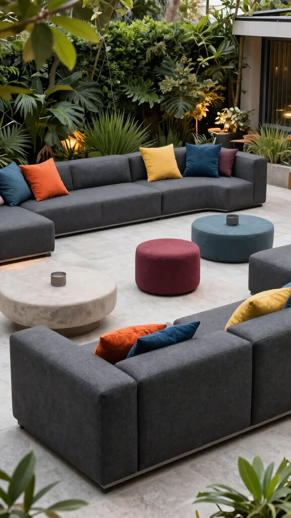 Modular seating arrangements bring flexibility and creativity to your outdoor space, especially with dark grey options. Choose dark grey modular sofas that can be rearranged easily, catering to various occasions from casual gatherings to intimate family time. These stylish pieces enhance comfort while contributing to a sleek ambiance. Consider adding a few ottomans that double as seating or footrests, providing functionality without sacrificing style. This flexibility allows you to modify the layout based on your needs, creating a dynamic outdoor atmosphere.