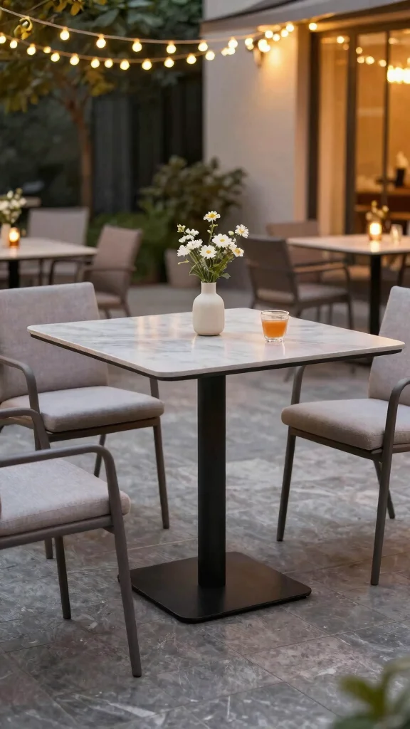 Many compact tables also feature built-in storage or integrated benches, maximizing your outdoor area without sacrificing aesthetics. This versatility is essential for enjoying your space to the fullest.