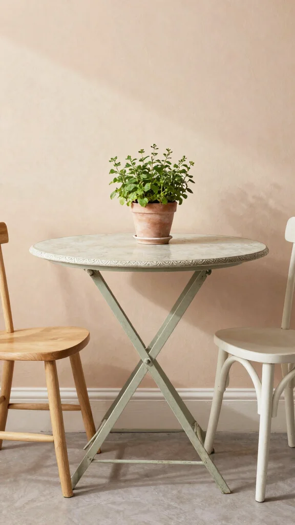 A vintage folding table beautifully blends practicality with timeless style, making it a delightful addition to your kitchen.