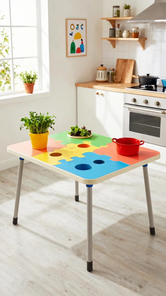 A creative puzzle table brings interaction and playfulness to your kitchen, enhancing both style and function.