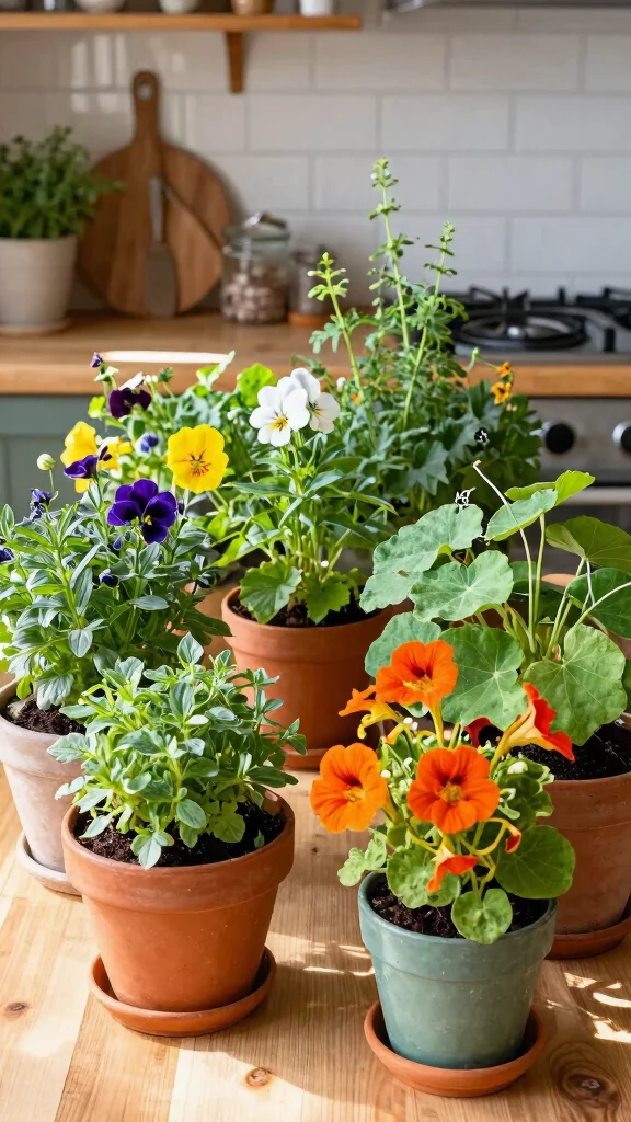 Combine beauty and flavor by creating an edible flower and herb garden! This delightful setup adds color to your kitchen while enhancing your culinary creations.