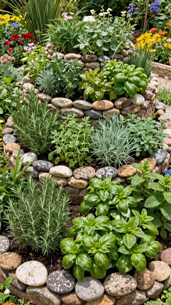 Construct the spiral from stones or bricks, creating different microclimates for diverse herb needs. Place drought-resistant herbs like rosemary at the top and moisture-loving herbs like mint at the bottom. Not only does it look stunning, but each herb gets the ideal growing environment tailored to its needs.