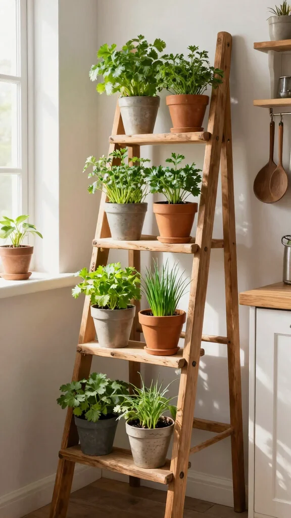 Have old furniture lying around? Turn it into a creative herb garden! A small bookshelf, a vintage ladder, or even an old dresser can become a unique gardening space in your kitchen.