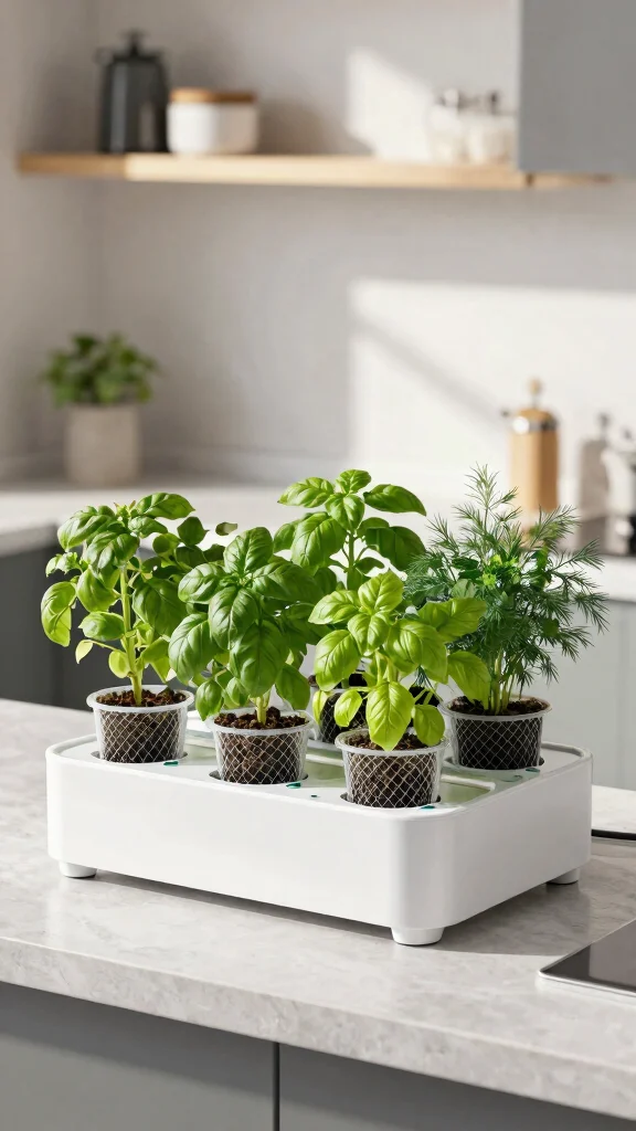 Take indoor herb gardening to new heights with hydroponics! This soil-less method allows for rapid growth and high yields, perfect for your kitchen counter.