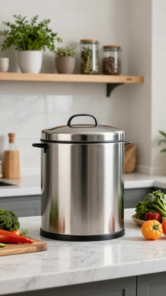 Why settle for a boring compost bin? Stylish composting containers made from materials like stainless steel or bamboo can enhance your kitchen’s decor. These chic designs are perfect for countertops or tables, offering both beauty and functionality.