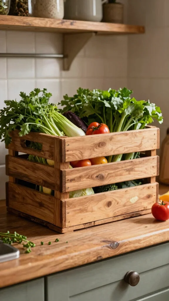– Use decorative wooden crates to blend composting into your kitchen decor while maintaining accessibility.