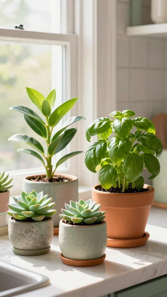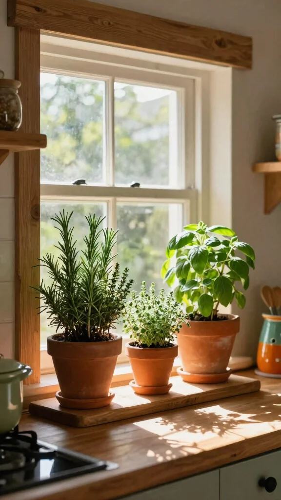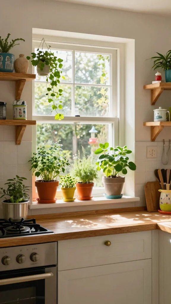 Seasonal displays add flair: Change your herbs and decorative plants with the seasons for a fresh look that keeps your kitchen lively and festive.