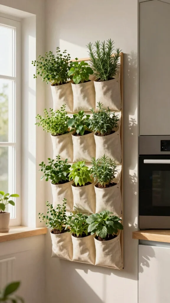 You can purchase vertical systems or make your own using wall-mounted planters or fabric pockets. Fill them with herbs that grow well together and have similar care requirements. This innovative approach elevates your cooking and transforms your kitchen into a vibrant sanctuary of nature!