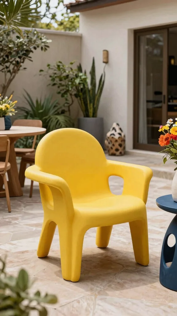 Incorporating statement furniture can transform your patio into a striking visual experience. A standout oversized chair or an eye-catching table can serve as the main focal point, drawing attention and sparking conversation. Imagine a vibrant-colored table surrounded by muted seating, creating an inviting contrast.