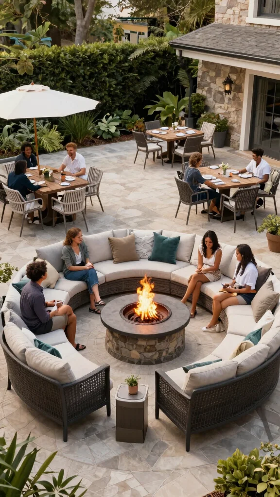 Ensure there’s ample room for movement between furniture pieces, allowing guests to flow comfortably through the space. Focus on a central element, like a fire pit or a beautiful garden, to draw the eye and create a focal point.