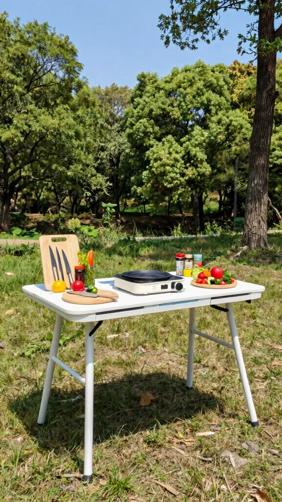 When selecting your table, consider ones that offer adjustable heights and storage options for utensils and spices. Here are some practical tips for using your table effectively: