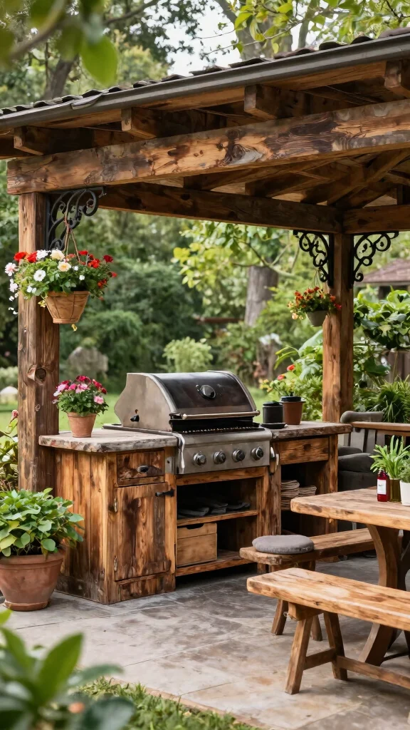 Are you dreaming of a grill area that radiates charm and warmth? A rustic setup using reclaimed wood can elevate your outdoor cooking space, giving it a unique character. This eco-friendly choice not only looks stunning but also helps the environment by repurposing materials, seamlessly blending with your garden’s natural beauty.