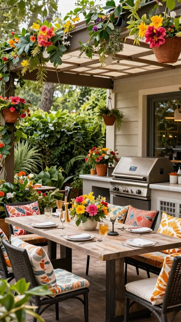 This cheerful approach ensures your outdoor grill space feels like a festive retreat, encouraging laughter and enjoyment during meals.