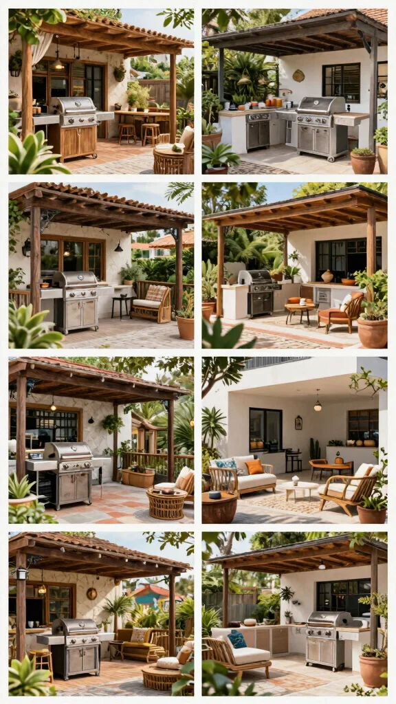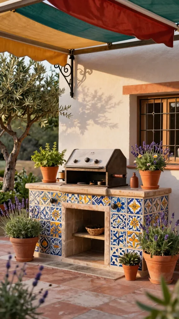 This design often features warm earth tones and bright colors, enhancing your outdoor experience. Imagine terracotta pots and wrought iron details surrounding your grill, creating a picturesque setting for gatherings.