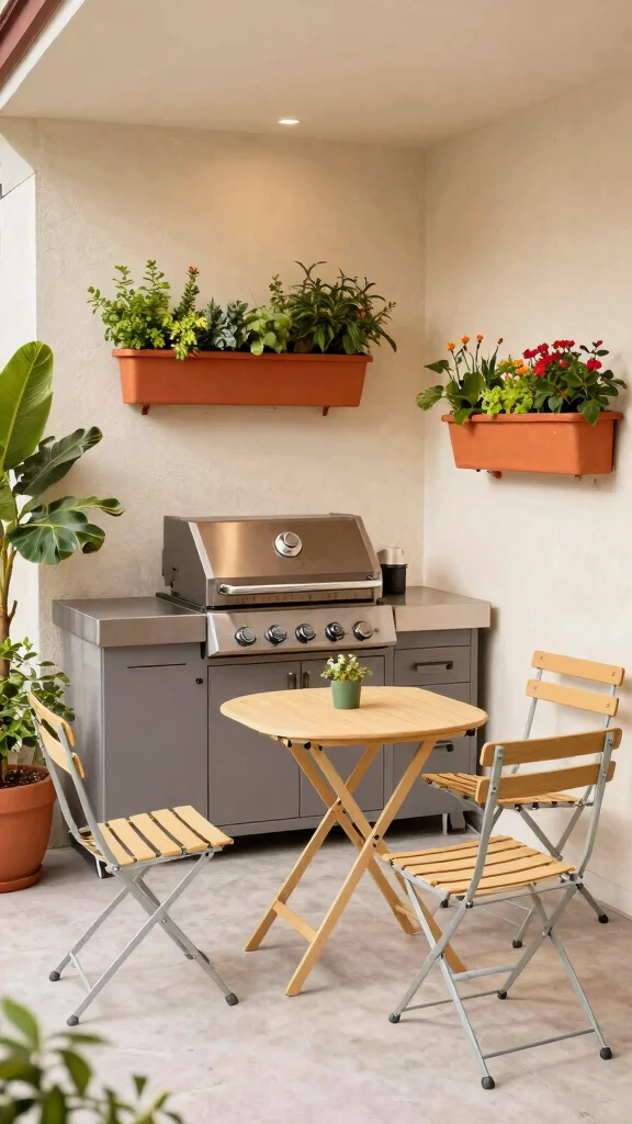Space-Saving Built-in grill, foldable tables Vertical gardens Maximize corner space