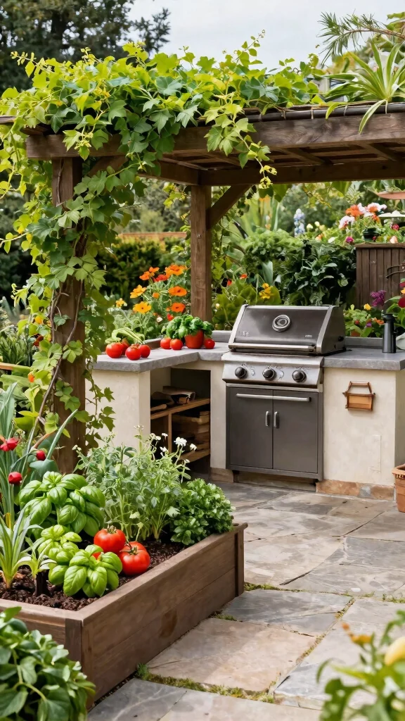 Grow herbs and vegetables nearby for fresh ingredients, enhancing your cooking and sustainability efforts.