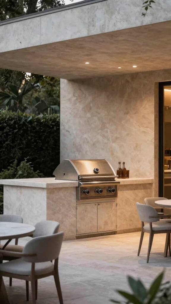 Add stylish bar stools for a modern touch, encouraging friends to gather while you grill. Keeping it uncluttered ensures every item has its purpose, making your cooking experience enjoyable.