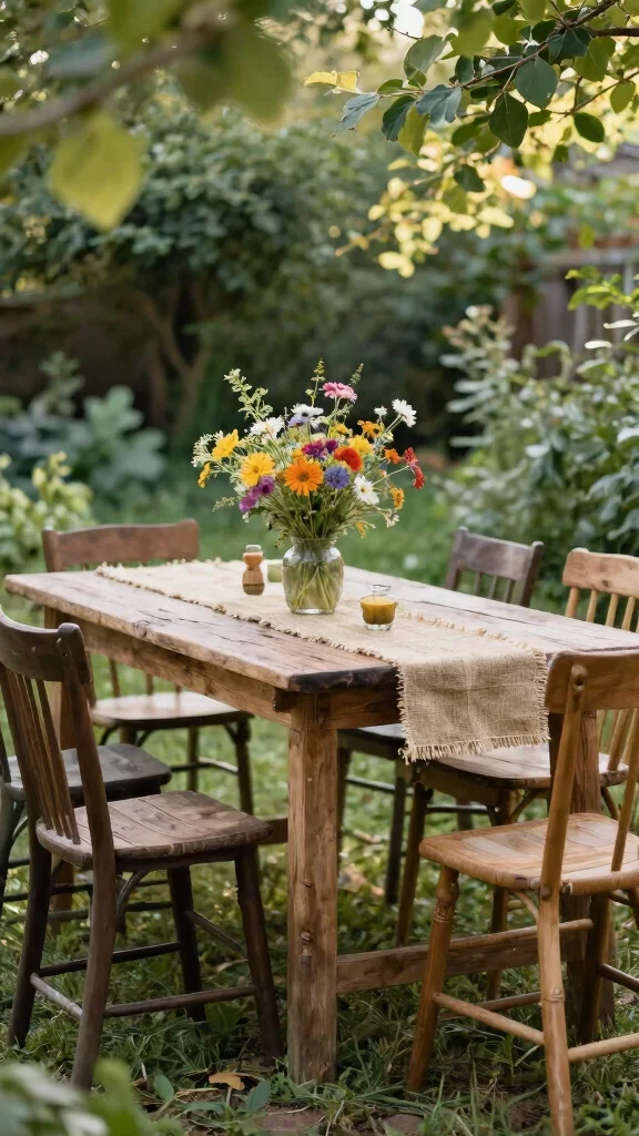 – Pair reclaimed wood with mismatched chairs for a cozy vibe.