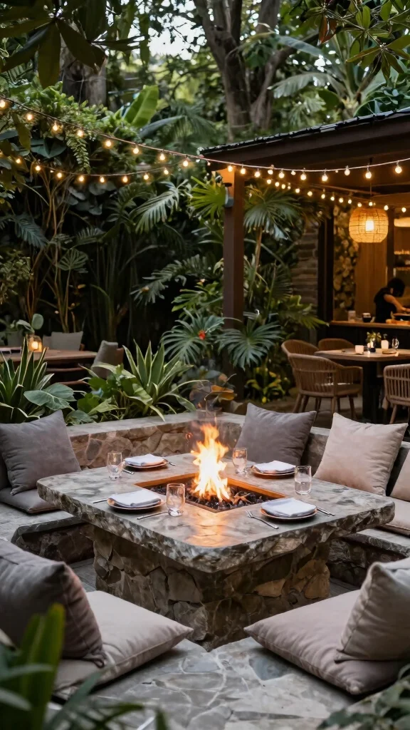 For a unique combination of dining and warmth, a natural stone fire pit table is an extraordinary choice. This table serves as both a dining area and a cozy gathering spot with its built-in fire feature. Choose a design that allows for seating around the fire to enhance the communal experience.