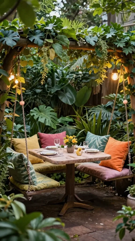 Add cozy cushions and blankets to enhance comfort while you dine. Incorporate nature-inspired decor with planters and fresh flowers to complete the whimsical look.