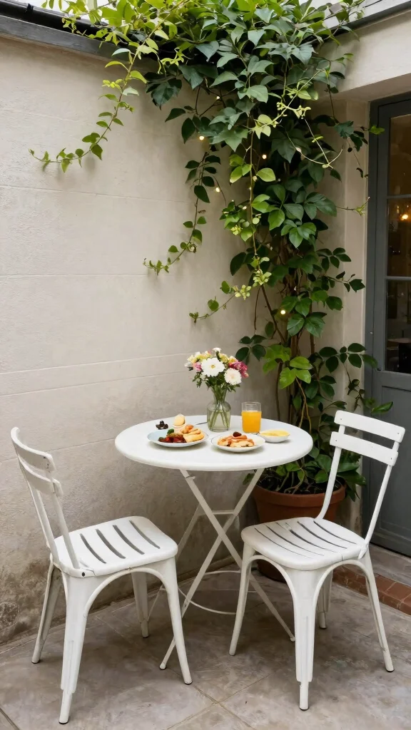 For cozy patios, a compact bistro table is the perfect solution. Not only does it save space, but it also adds a chic flair to your outdoor area. A round table with folding capabilities can maximize your space while maintaining style. Pair it with sleek, stackable chairs that can be stored easily when not in use.