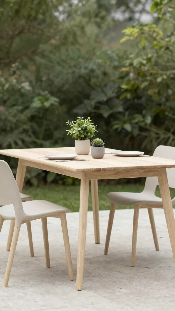 For fans of clean lines and simplicity, a Scandinavian-inspired outdoor dining table is an excellent choice. Opt for a modern design crafted from sustainable materials like bamboo or teak. Pair it with minimalistic chairs that enhance the table’s aesthetic.