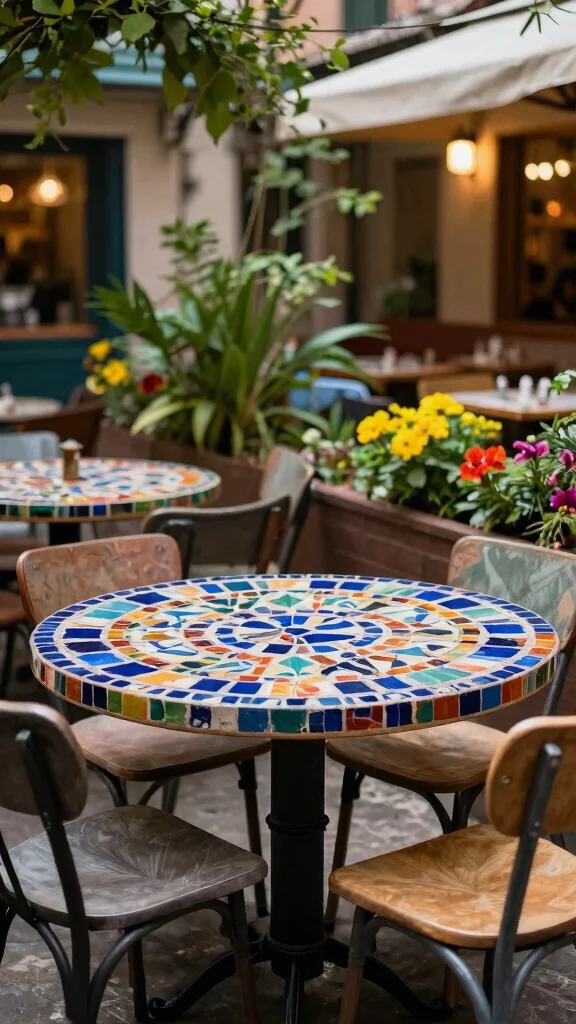 Unleash your creativity with a colorful mosaic dining table that serves as a vibrant centerpiece for any outdoor space. These tables blend art with functionality, showcasing intricate designs made from various materials. Choose a style that mirrors your personality and complements your garden’s aesthetic.