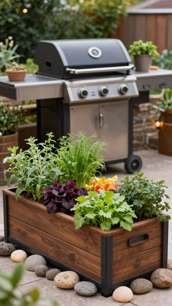Grill-side garden boxes beautifully combine gardening and grilling, offering convenience and joy in outdoor cooking.