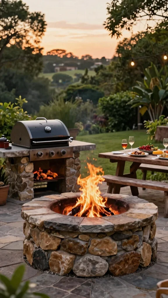 Integrating a stone grill adds unique charm while supporting eco-friendly practices.