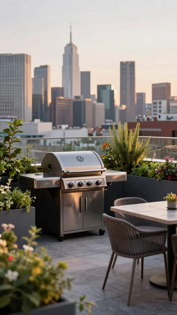 Many rooftop setups feature sleek, compact grills that fit beautifully within the overall aesthetic. You can enjoy stunning skyline views while grilling your favorite dishes. Pair your grill with vertical planters to add greenery, enhancing your urban oasis.