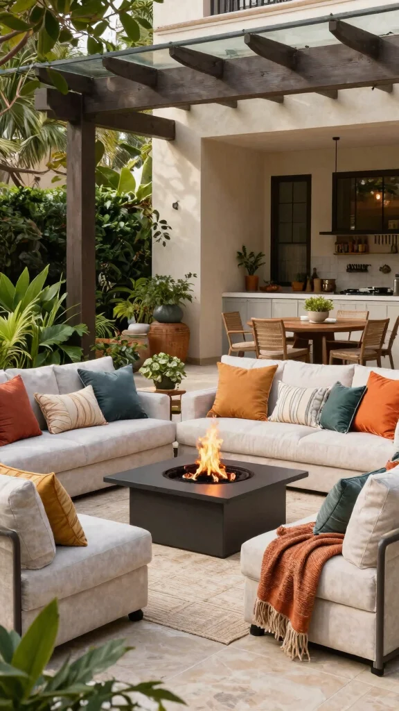 Using weather-resistant fabrics for cushions ensures durability and comfort, making your space inviting. This mindful approach to decorating will create a warm atmosphere for gatherings.