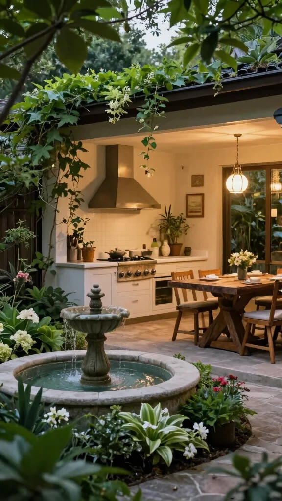 Looking to enhance your outdoor experience? Integrating water features can create a soothing environment. The gentle sound of water transforms your kitchen and dining area into a peaceful retreat. Whether it’s a small fountain or a serene pond, the addition can elevate the overall aesthetic.