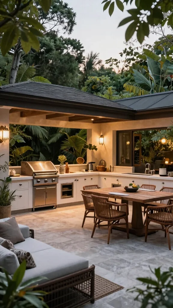 This design captures the essence of minimalism, allowing your outdoor kitchen to become a peaceful retreat for cooking and socializing.